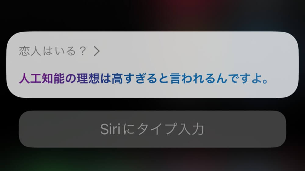 Siriに恋人の有無を聞くと、複数のパターンで答えてくれます。