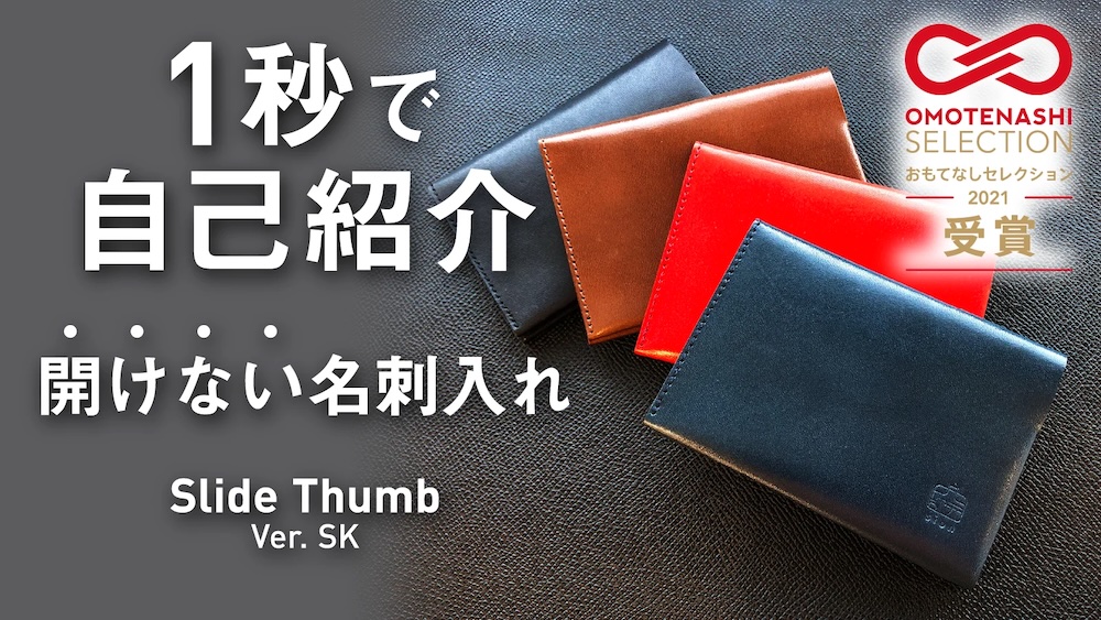 「Slide Thumb®(スライドサム)」は、1秒で名刺を取り出せる構造と、上質な国産レザーを融合させた次世代の名刺入れです。