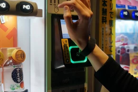 WRIST PAYを装着していればスマホを持たなくても外出でき、手ぶらでコンビニや自販機で支払いが可能になります。
